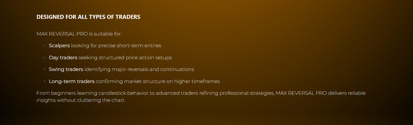 Universal Compatibility – Works seamlessly on all instruments, including forex pairs, stock CFDs, indices, gold, oil, and even crypto assets.