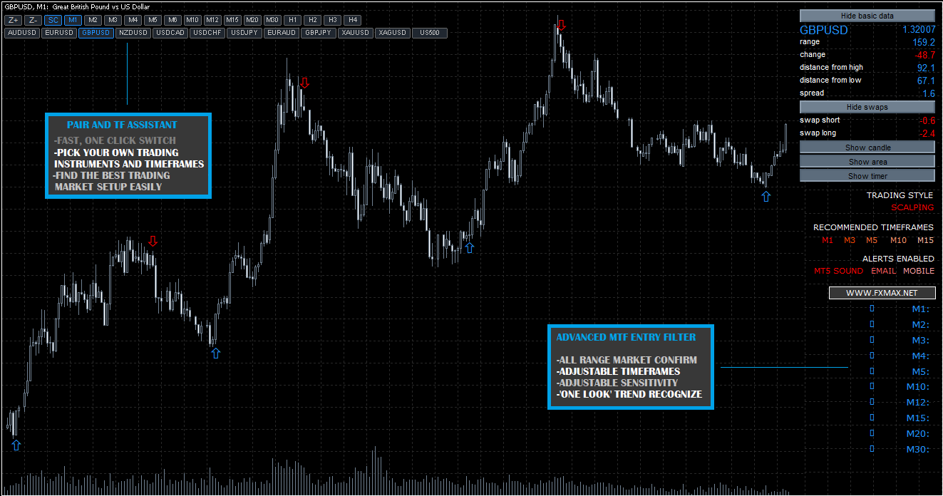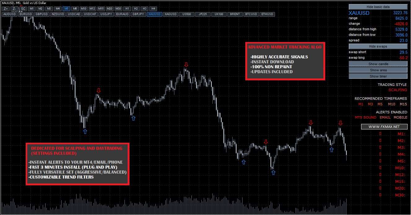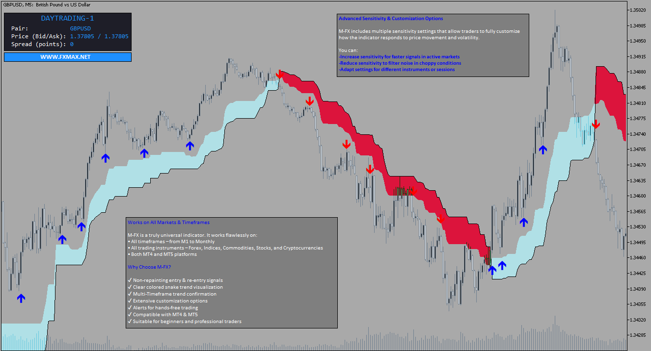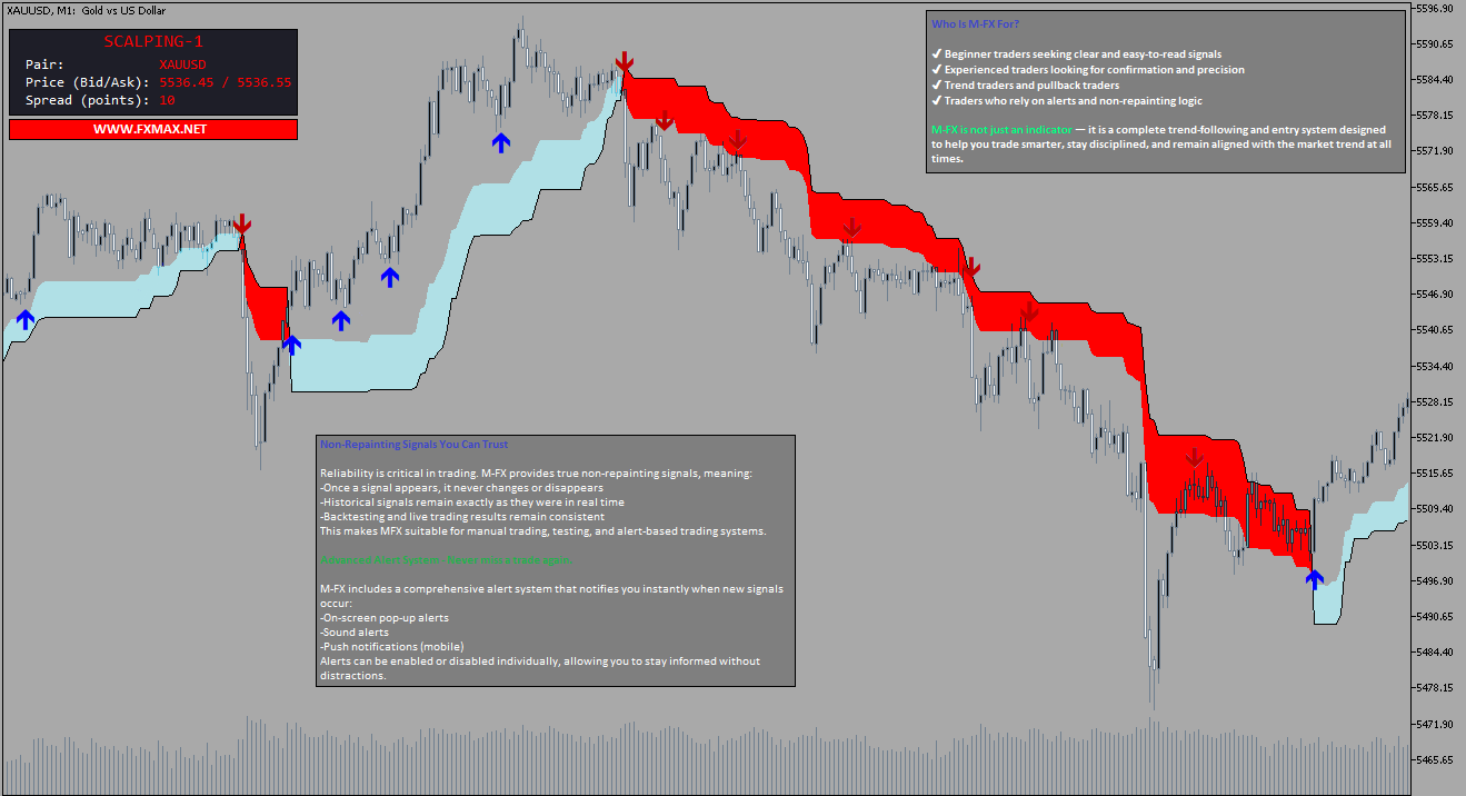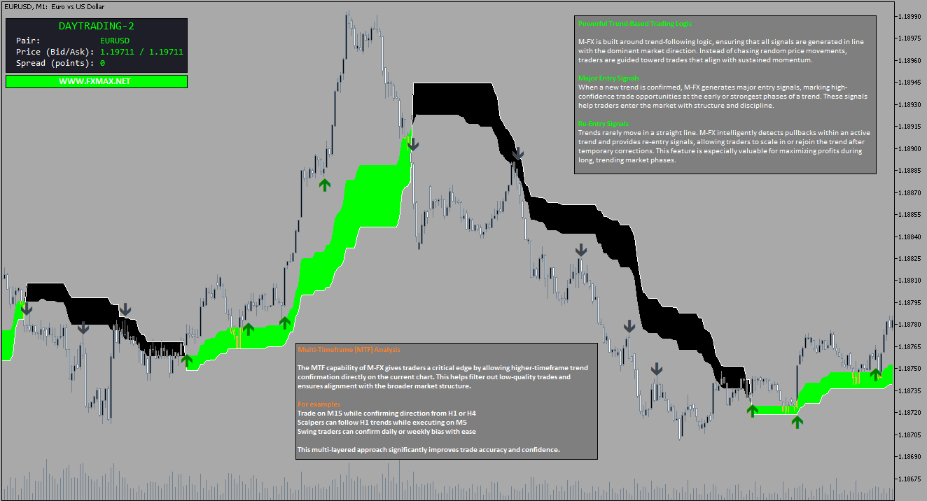 The M Indicator is a next-generation trading tool for MetaTrader 4/5, designed to deliver clear, reliable, and actionable trading signals in all market conditions. Developed for traders who demand accuracy, flexibility, and confidence, M combines advanced trend detection with precise entry and re-entry logic to help you trade in the direction of the dominant market flow.