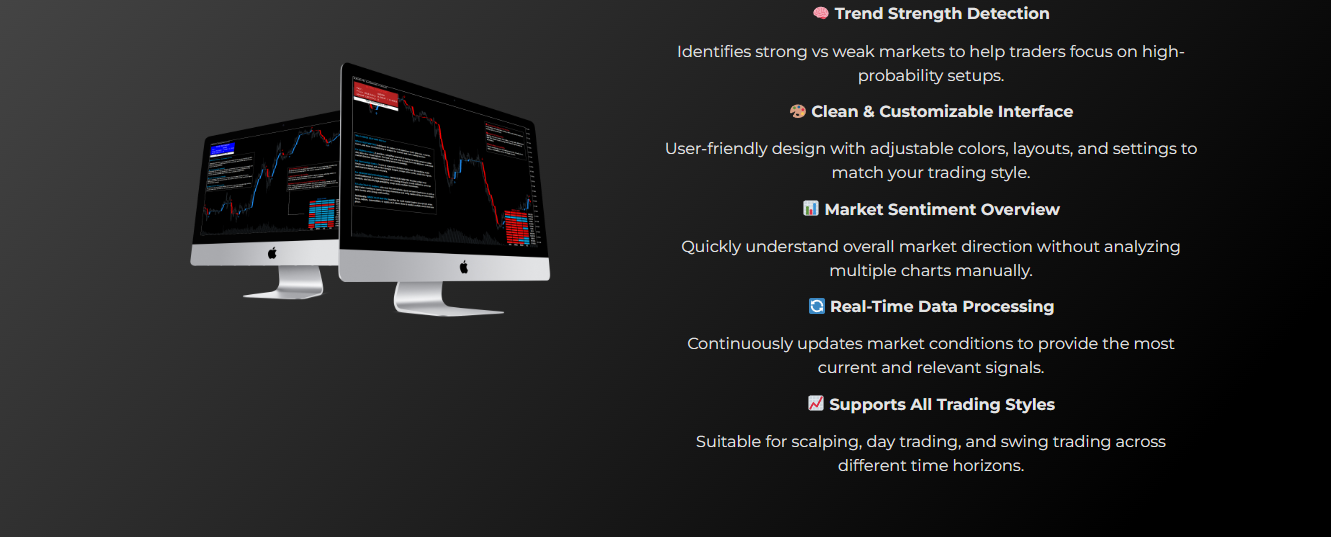 The software also includes smart alert and notification systems, allowing traders to stay informed without constantly monitoring their charts. Alerts can be customized based on specific conditions, such as heat map strength changes, signal confirmations, or multi-timeframe alignment. Notifications can be delivered directly within the platform or via mobile alerts, ensuring that you never miss a trading opportunity.
