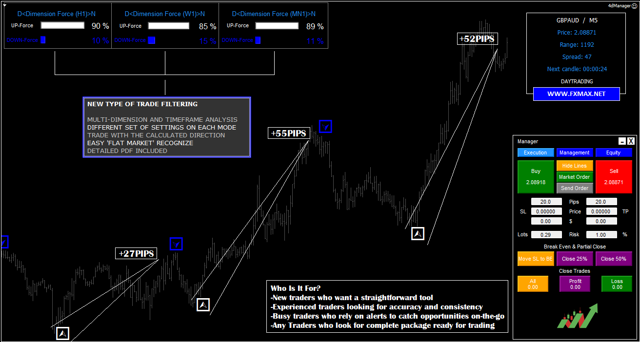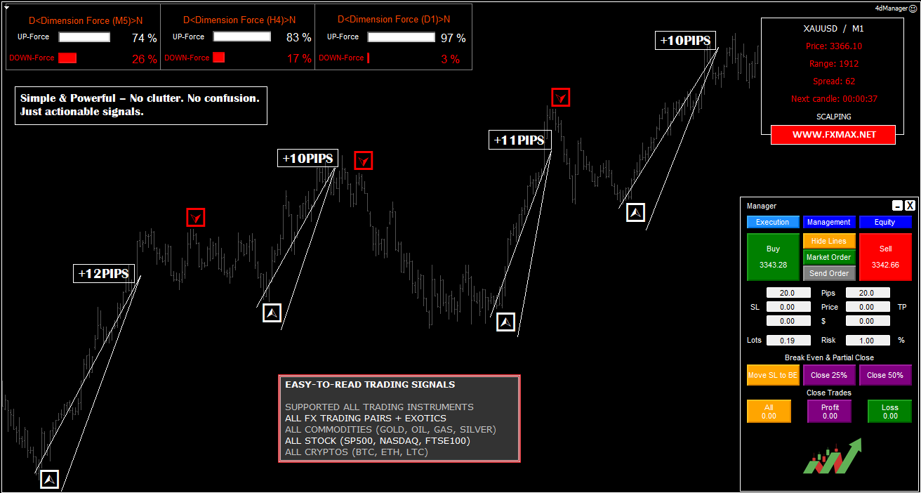 By merging price, time, momentum, and sentiment into one framework, the MT4 4D Indicator offers traders a multi-dimensional perspective. This allows for more confident entries, precise exit timing, and a better understanding of market dynamics as they unfold.