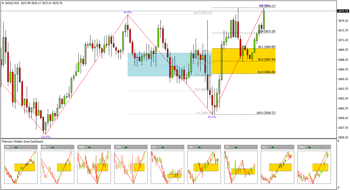 Multi-Timeframe (MTF) Dashboard: Shows the Fibonacci structure and level proximity for several user-selected timeframes (e.g., M15, H1, H4, D1) in one compact panel.