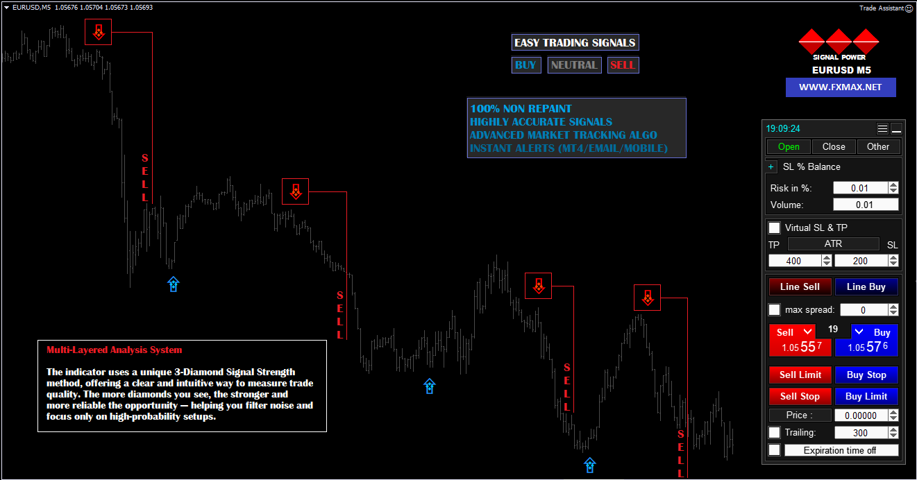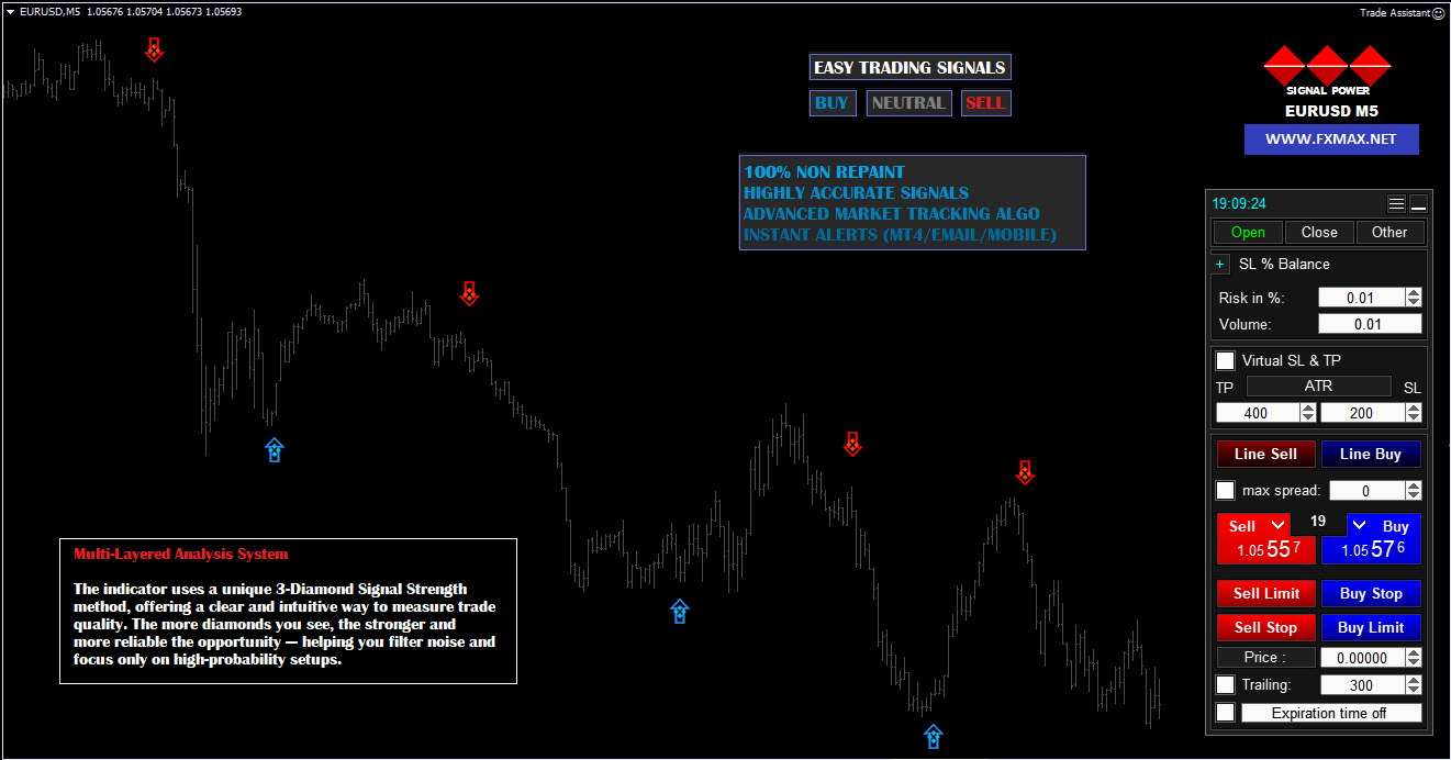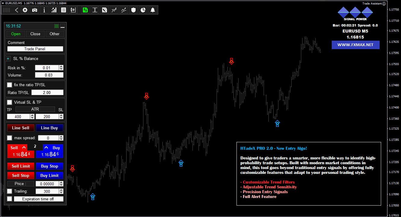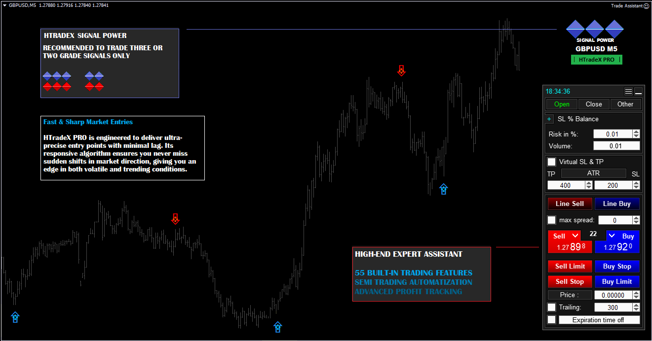 HTradeX PRO is an advanced MT4 indicator developed to identify high-probability trade opportunities with speed and precision. It combines multiple layers of market analysis, signal strength grading, and an integrated expert assistant to support effective trade execution.