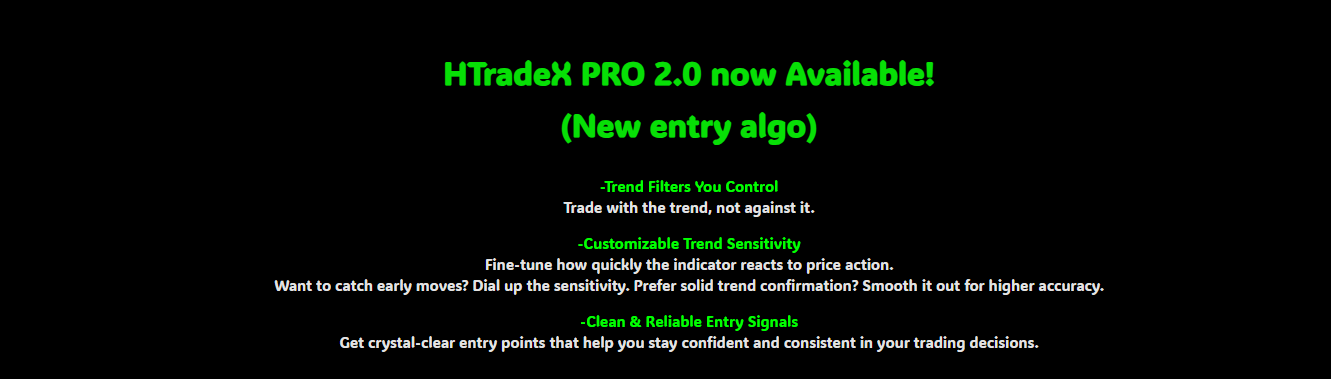 HTradeX PRO is not only a signal tool but also a comprehensive technical assistant. Its combination of sharp entry detection, multi-layered confirmation system, and expert assistant functionality makes it a reliable resource for traders seeking efficiency and precision in their market decisions.