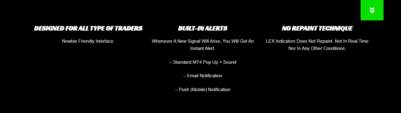 By changing candle colors, LEX gives traders a quick visual cue about the current market sentiment without needing to interpret multiple indicators.