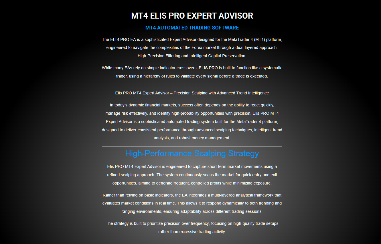 Elis PRO MT4 Expert Advisor – Precision Scalping with Advanced Trend Intelligence