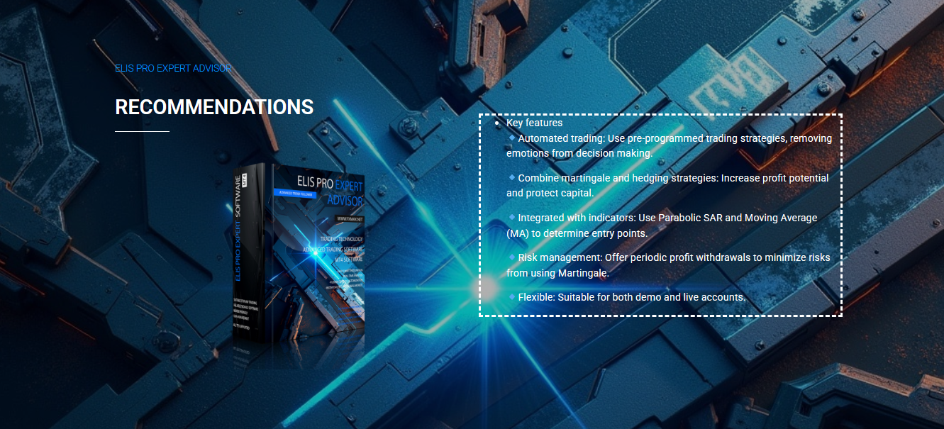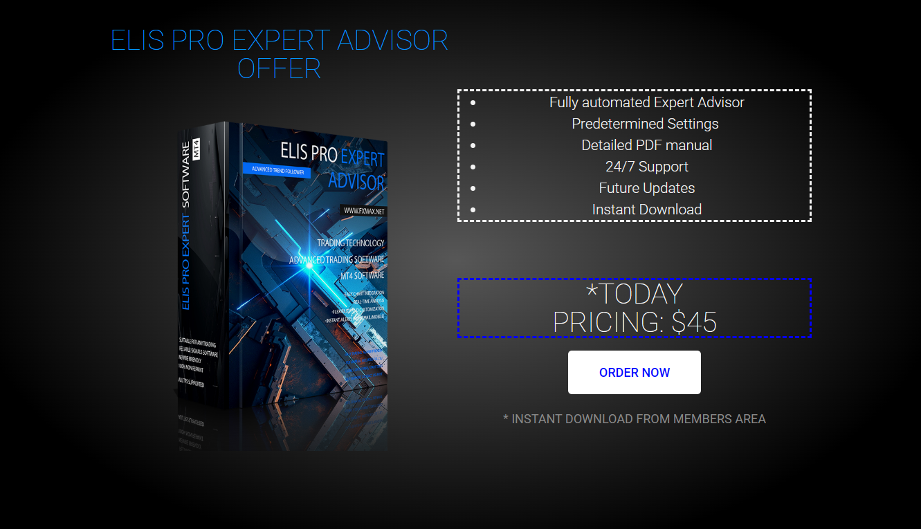 Elis PRO MT4 Expert Advisor is a fully automated solution, allowing traders to benefit from algorithmic trading without the need for constant monitoring.