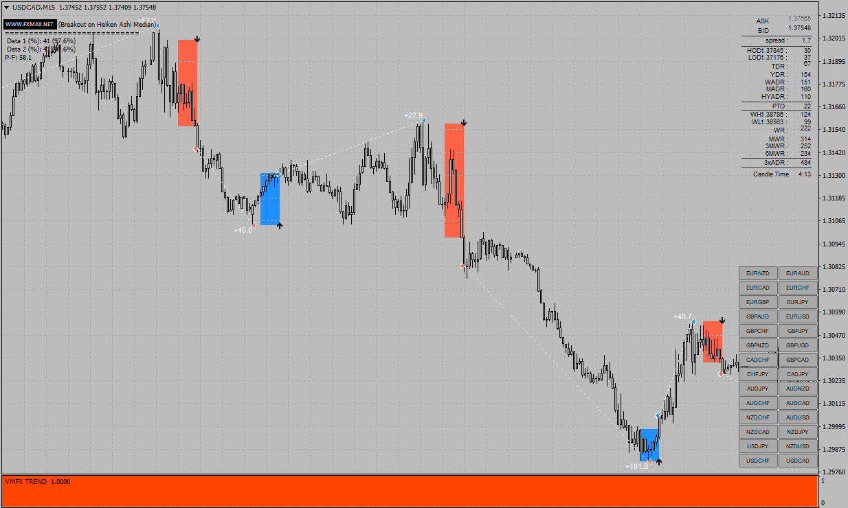 • Scalping: On lower timeframes (M1–M5), traders can use VQFX to time entries around short bursts of momentum or exhaustion points.
