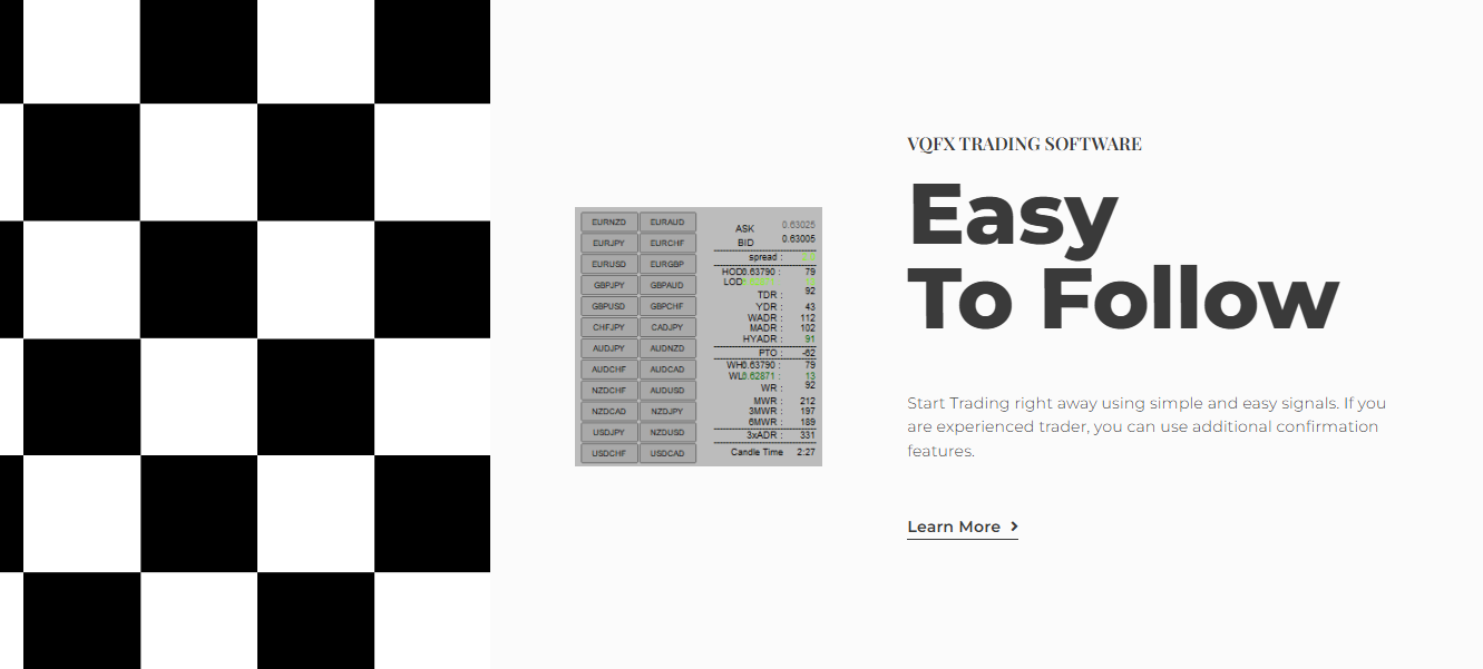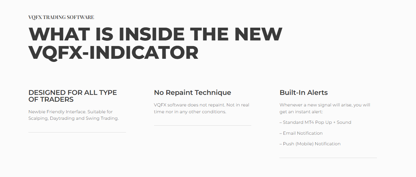 • Confluence Tool: VQFX can be used also combined with structure analysis (support/resistance, supply/demand) or volume/volatility filters to validate its signals.