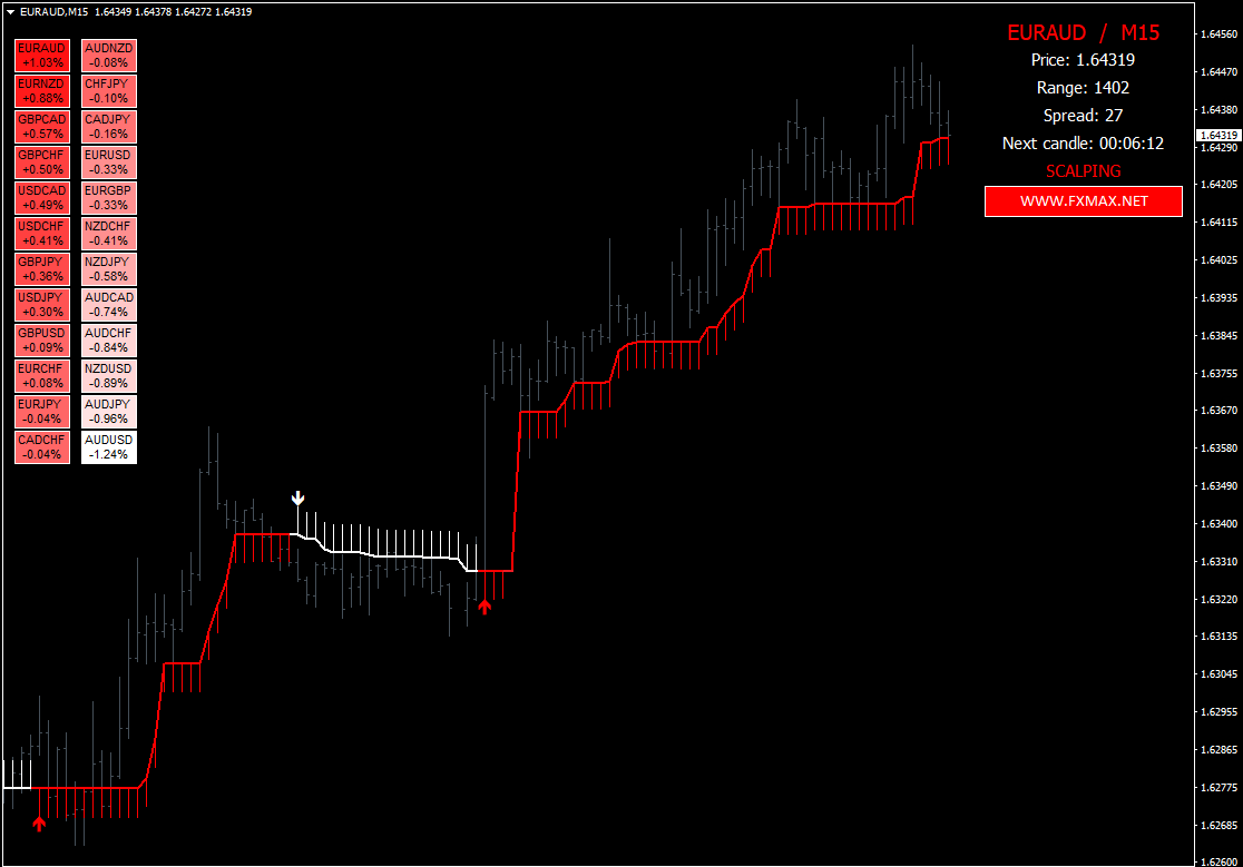 It continuously analyzes currency strength, volatility, and directional momentum across multiple timeframes to display the most trending pairs and provide accurate trade entry points based on real-time market data.