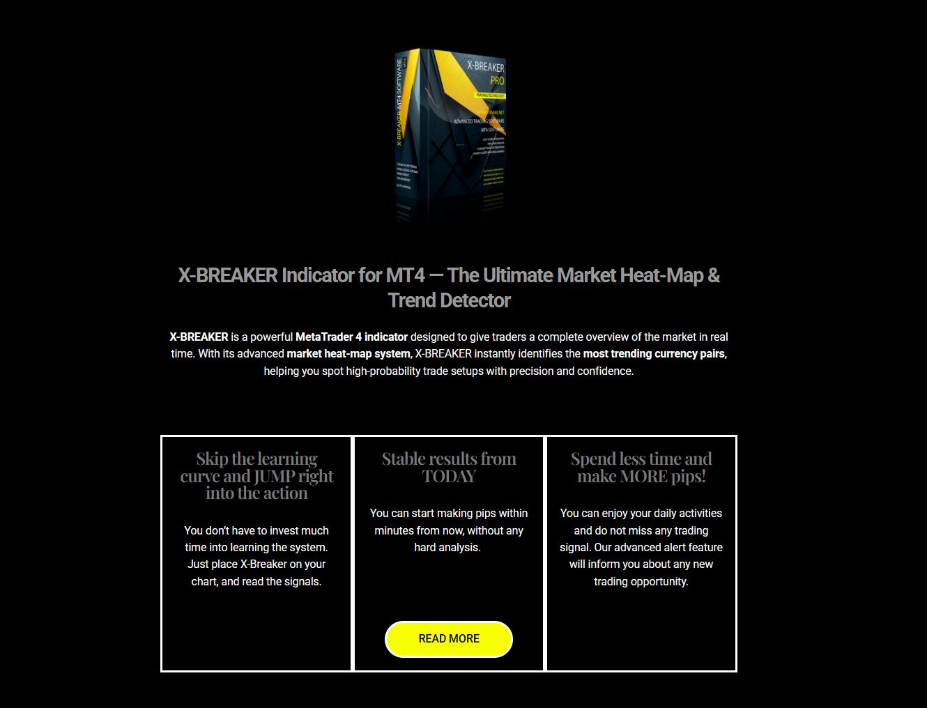 The X-BREAKER Indicator is a comprehensive market scanning and signal generation tool for MT4 that combines a heat-map visualization, trend confirmation algorithm, and mode-based adaptability.